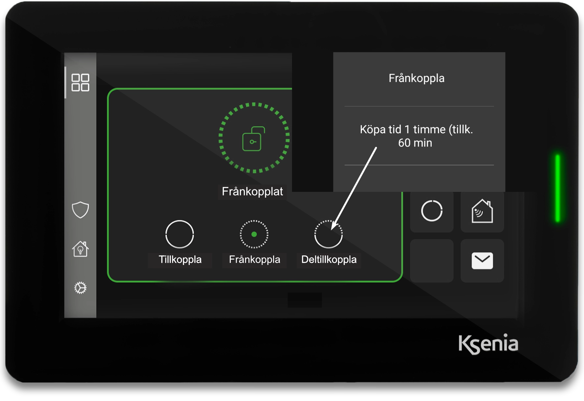 Det ska vara möjligt att köpa en timmes fördröjning av tillkoppling, men endast inom en timme före den schemalagda tillkopplingen via kalendern. Det ska även vara möjligt att köpa extra tid i samband med att larmsystemet tillkopplas av kalendern.