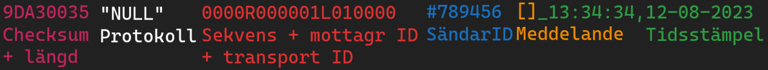 Checksumma: En kontrollsträng av meddelandet för att säkerställa att ingen information har blivit korrupt.