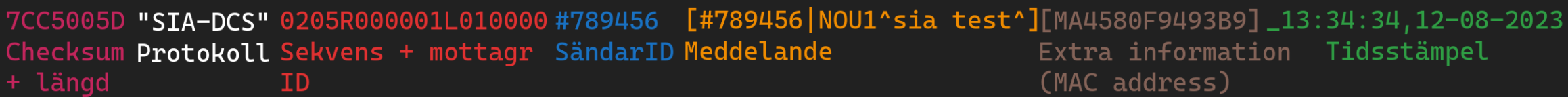 Detta är ett SIA-DC03 meddelande som bärs över SIA-DC09. ”SIA-DCS” indikerar att protokollet är SIA-DC03.
