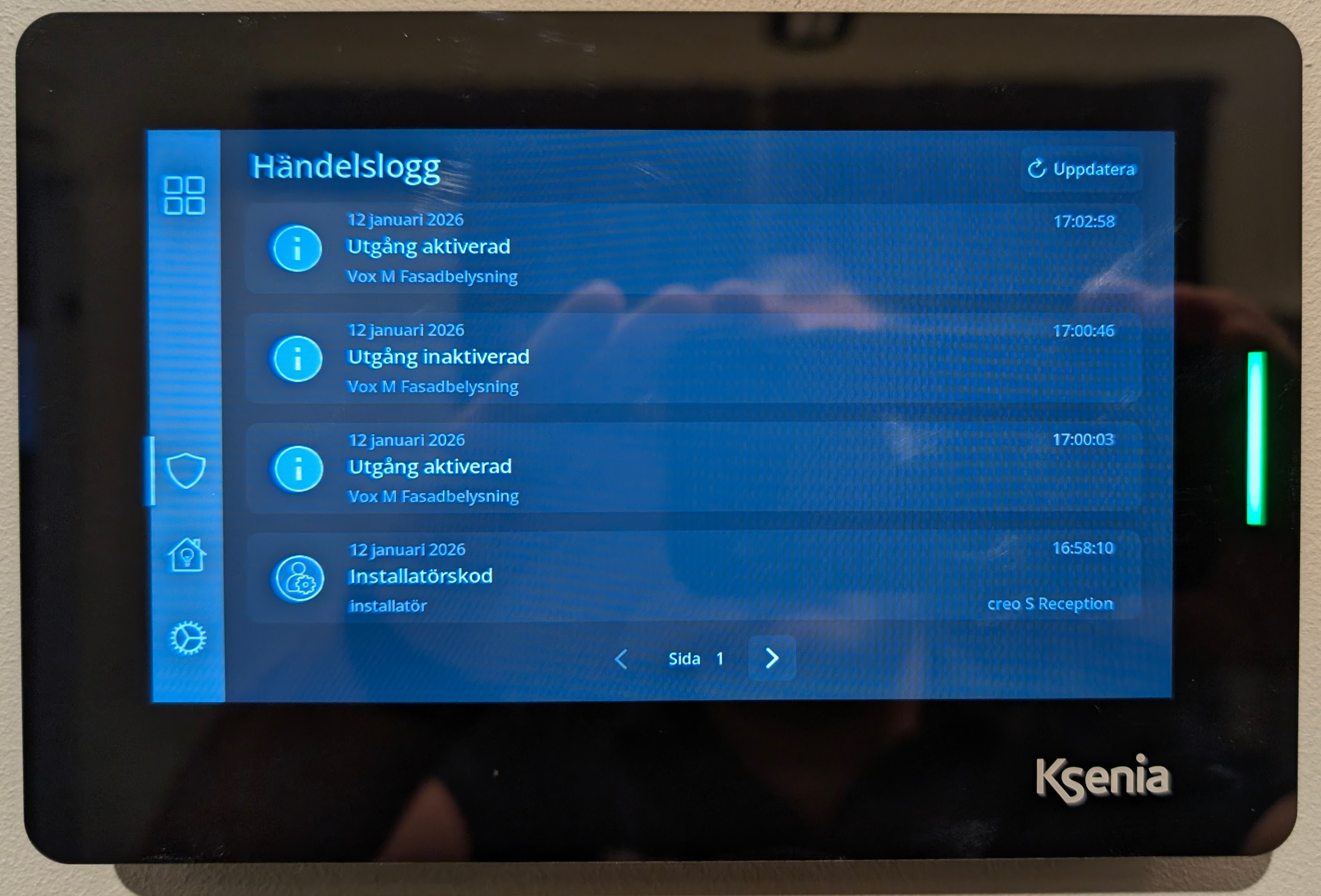 creo-S: Systemunderhåll (endast åtkomligt med installatörens PIN-kod).